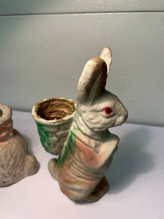 Vintage 1940`s Paper Mache Easter Bunny Rabbit Candy Container