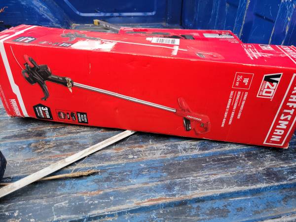 New in box Craftsman String Trimmer and Edger. This model has a This is a very light trimmer, even with a larger battery it wouldnt be difficult to use, especially if someone you care about, isn't as strong as they once were. This comes with an either 2 or 4 ah battery, I know it was small, and a charger. Your dad would love this for Christmas.